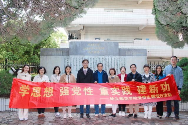 党建融合促发展 协同创新攀高峰 幼儿师范学院党委 幼儿师范学院党委围绕“夯实基础、扎实推进、彰显特色、创建品牌”的总体思路,紧密结合学院中心工作,创新思路、主动作为,开展了以“凝心聚魂学思想,筑牢根本”“党建融合促发展,勇攀高峰”“服务社会创特色,担当使命”为主题的系列主题党日活动,坚定理想信念,筑牢信仰之基,不断提升党组织的凝聚力、吸引力、创新力。 凝心聚魂学思想,筑牢根本。坚持以党委理论学习中心组为主体,通过全体教师集中学、教研室研习学、党支部深入学等方式围绕党的创新理论、师德师风建设、习近平总书记在江苏考察时的重要讲话精神等深入学习研讨,通过学习,提高党性修养,坚定理想信念,凝聚师生力量,为学院事业高质量发展供坚实的思想保证。